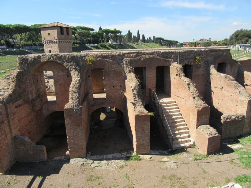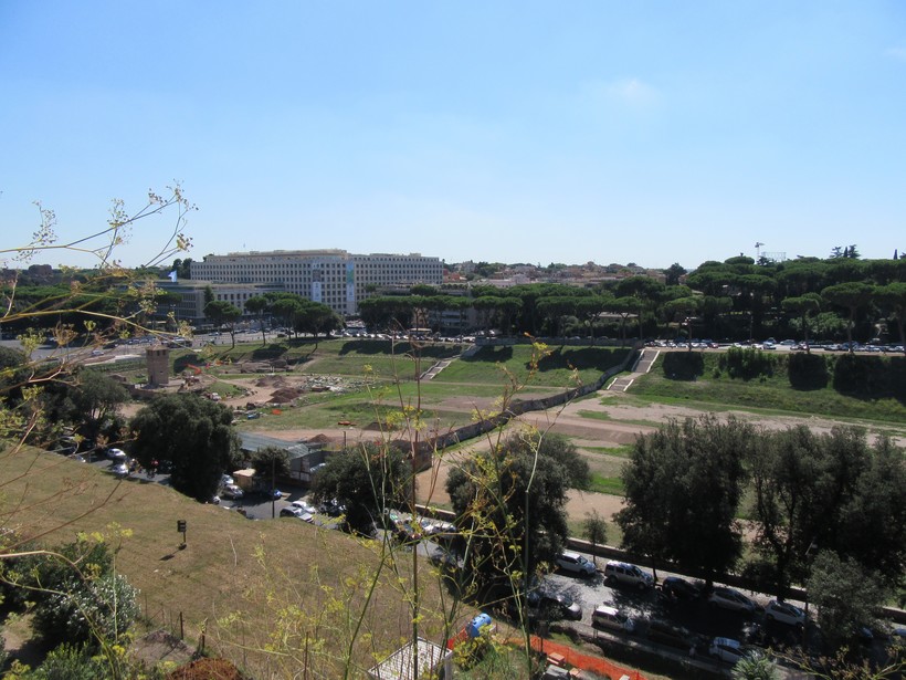 С юго-западной стороны под Палатинским холмом пролегает Большой Цирк (Circo Massimo) – большой пустырь, оставшийся от старинного ипподрома. Тоже красиво смотрится сверху.