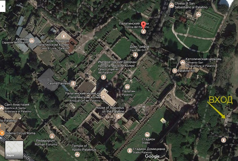 Схему расположения достопримечательностей Палатина прилагаю на рисунке ниже. По нажатию ее можно увеличить.