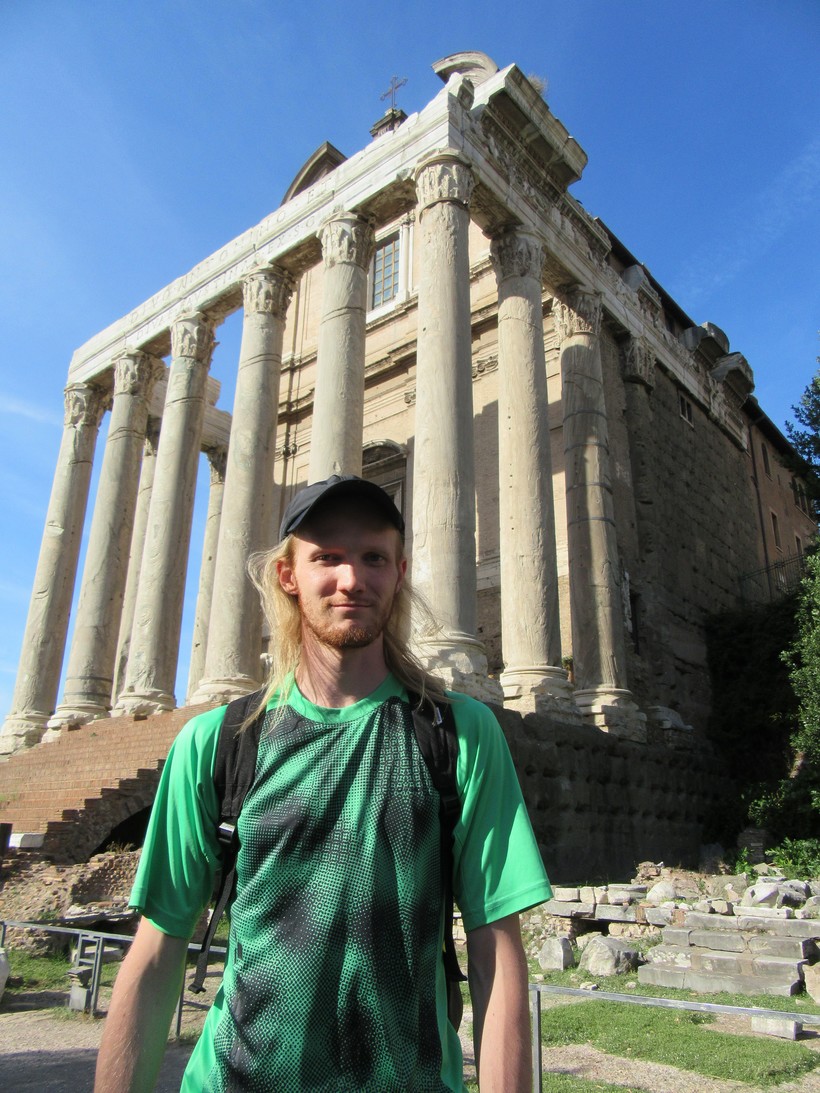 Датируется золотым веком Имперского Рима, построен одним из пяти «хороших императоров» (это не моя личная характеристика, это так принято называть представителей династии Антонинов в традициях античных и средневековых историков). В 141 г. н.э. горюющий по своей безвременно почившей половинке Фаустине император Антонин Пий приказал построить и посвятить ей целый храм. А когда скончался и сам император, Сенат, который к нему уже тогда относился с почтением и любовью, решил его память тоже увековечить. Люди, конечно, склонны перехваливать «старые добрые времена», но скорее всего, правители от Траяна до Марка Антония в целом были действительно очень неплохими для своего времени.