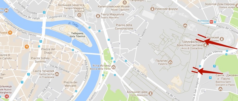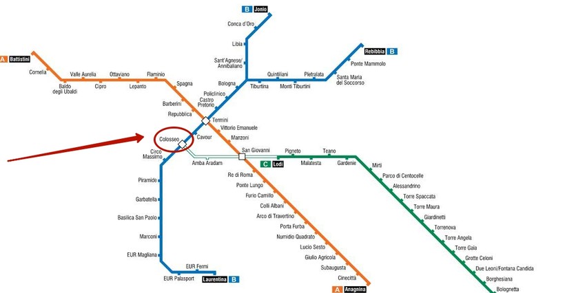 Доезжаете до Колизея. По карте вы всегда его найдёте по топониму Piazza del Colosseo (в логике не откажешь).