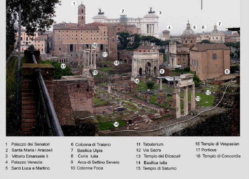 - церковь Св. Петра (Chiesa di San Pietro) над Мамертинской тюрьмой и стоящая рядом церковь Св. Луки и Мартина (Chiesa di Santi Luca e Martina).