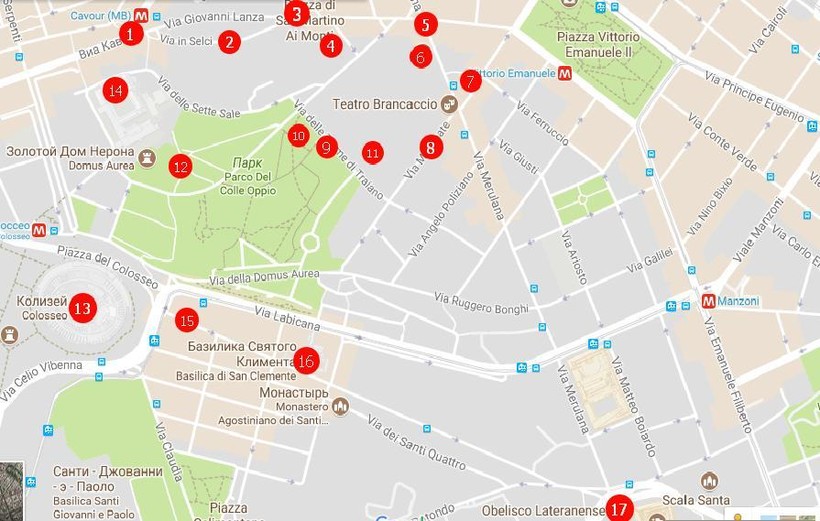 Эту прогулку мы начнём возле метро Cavour (1).