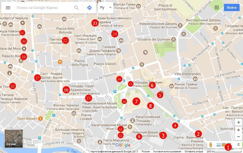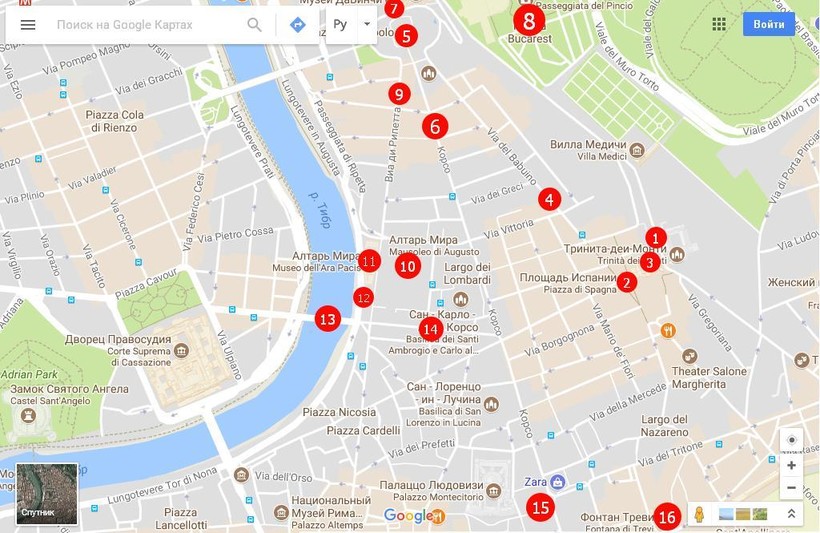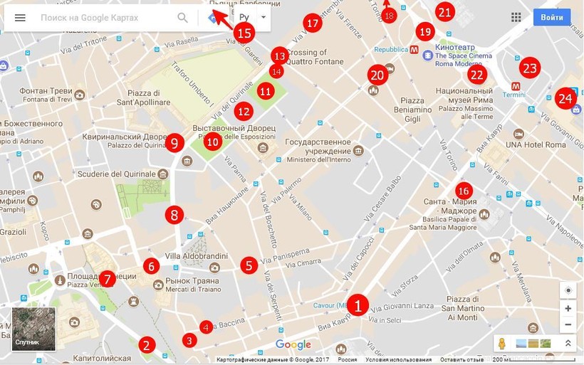 Сегодня на нашем пути будет гораздо меньше античности и гораздо больше пышной красоты позднего средневековья. Начнём прогулку недалеко от метро Spagna (1).