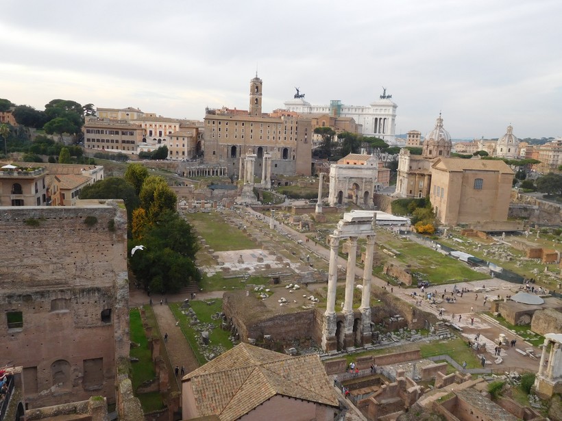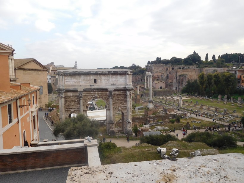 Давайте ненадолго свернём в сторону, на via S.Pietro in Carcere (8), отсюда открывается отличный вид на римский Форум.