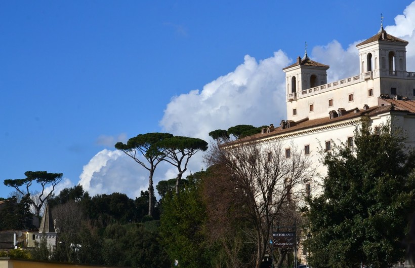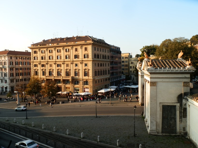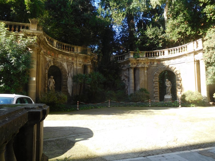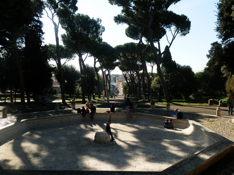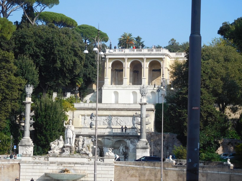 Мы сейчас находимся у подножия холма Пинчо. В античные времена это была загородная область, где знатные римляне строили свои «дачи» и разбивали сады. Впоследствии окрестности холма оказались уже в пределах городской черты, но сады остались и даже расширились: уже новая знать облюбовала приятное местечко – такие семьи, как Медичи и Боргезе, обустроили здесь свои виллы, сохранившиеся до наших дней.