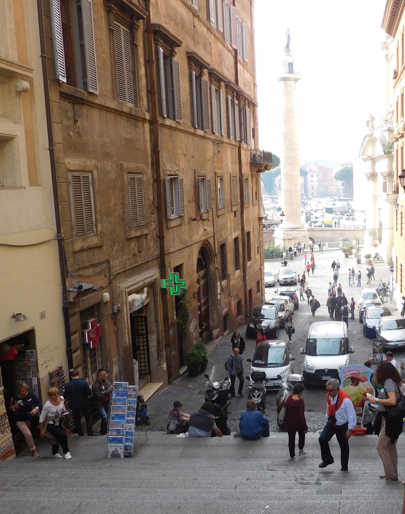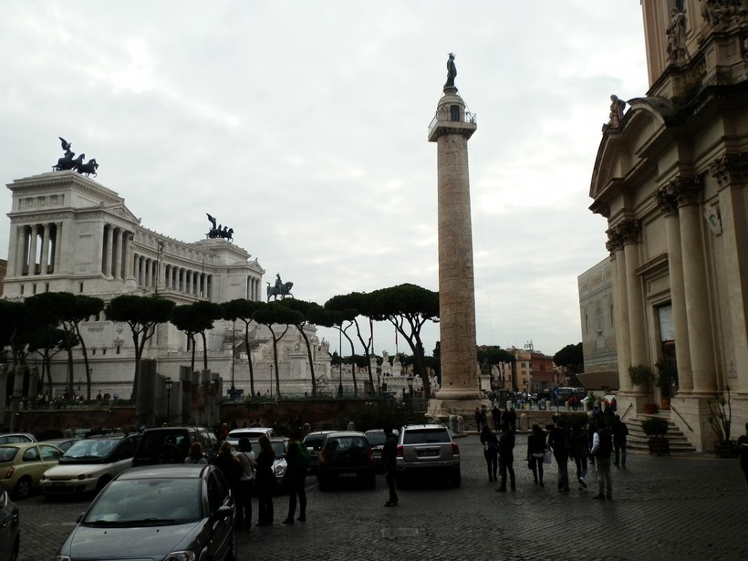 Вскоре мы окажемся на оживлённом перекрёстке. Слева – вход в музей Рынка Траяна (6), а чуть дальше, в проёме между зданиями видна Колонна Траяна (7).