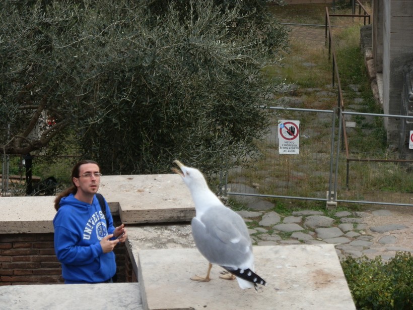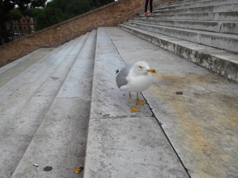 Как и практически везде на улицах Рима, перекус проходит под придирчивым надзором местных чаек.
