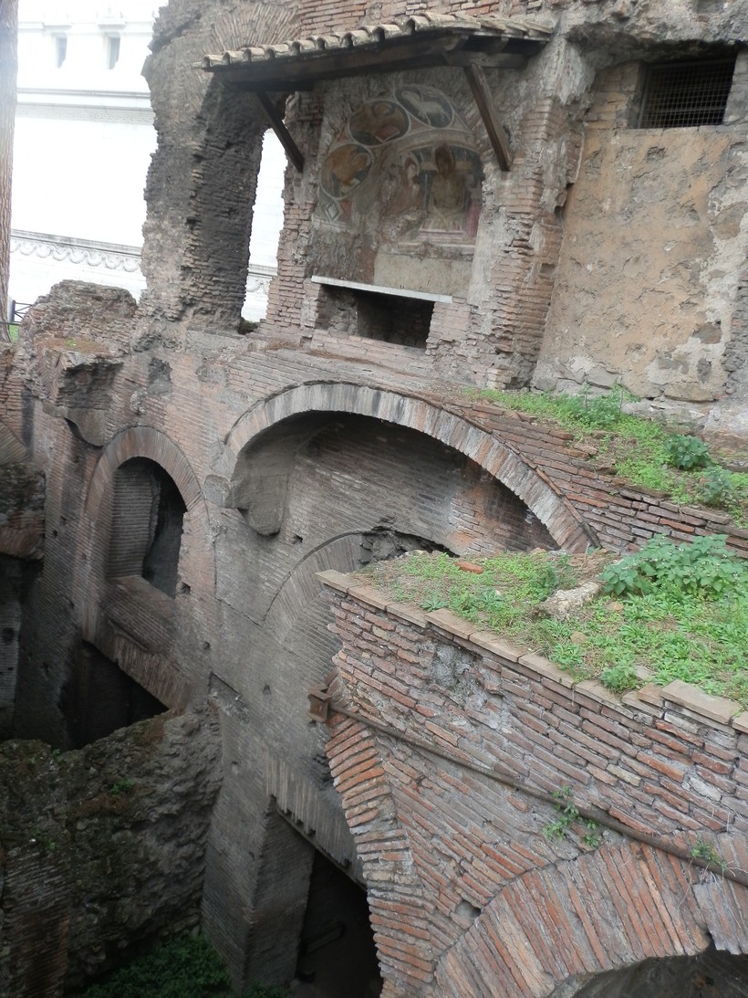 Вернёмся к Алтарю Отечества и обогнём его с северной стороны. Остановитесь возле неприметной постройки у подножия Капитолия (10). Это, возможно, единственная сохранившаяся в городе инсула – многоэтажный дом периода расцвета Римской Империи (первые столетия нашей эры).