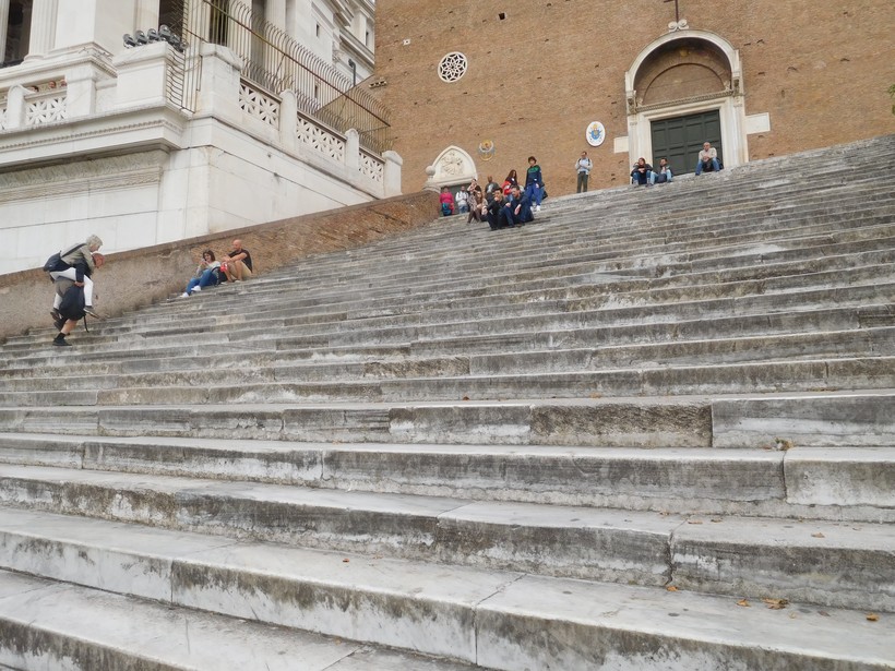 На лестнице Aracoeli у туристов принято присаживаться перекусить.
