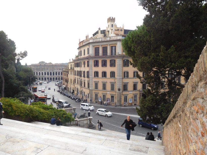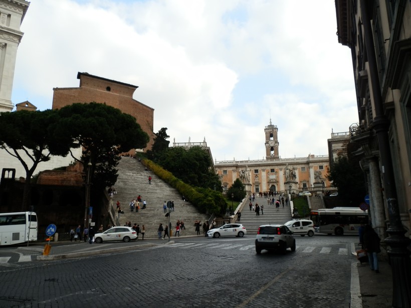 Вообще-то, туда ведут две лестницы: парадная Кордоната авторства Микеланджело (11) и лестница Aracoeli (12), поднимающаяся к одноимённой церкви, через которую также можно выйти на Капитолийскую площадь.