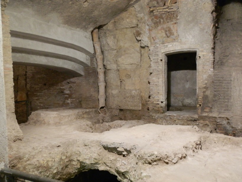 Это, наверное, самая «многослойная» церковь города: на нижнем уровне – фундамент римского дома времён республики (до нашей эры), выше – зажиточный дом I века нашей эры, тут же рядом остатки многоэтажного дома времён императорского Рима, а ещё выше – элементы древней церкви, построенной на этом месте в IV веке. Всё это можно обойти и осмотреть.