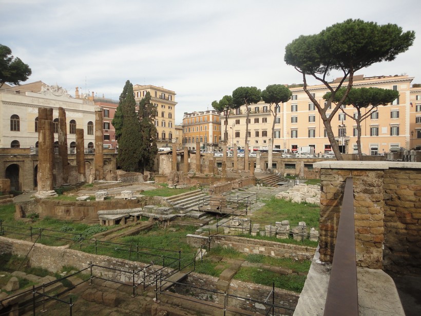 Здесь в начале XX века археологи нашли развалины четырёх античных храмов и много других слоёв древнеримской цивилизации, в частности – остатки общественного туалета. Но в первую очередь это место знаменито тем, что именно здесь, у входа в театр Помпея, был убит Юлий Цезарь.