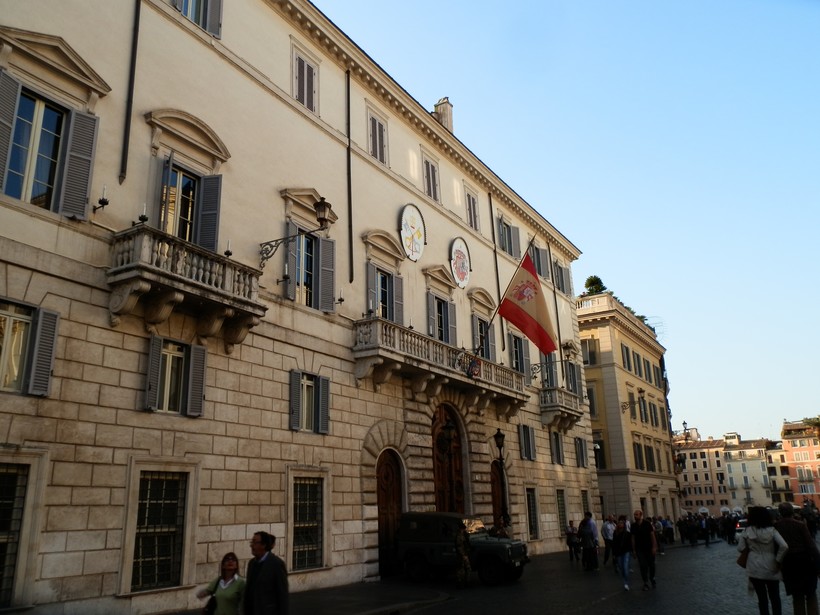 Мы находимся, наверное, в самом романтичном уголке Рима – на Испанской площади (2). Своё название она получила благодаря представительству испанских королей, издавна находившемуся здесь (сейчас тут по-прежнему испанское посольство).