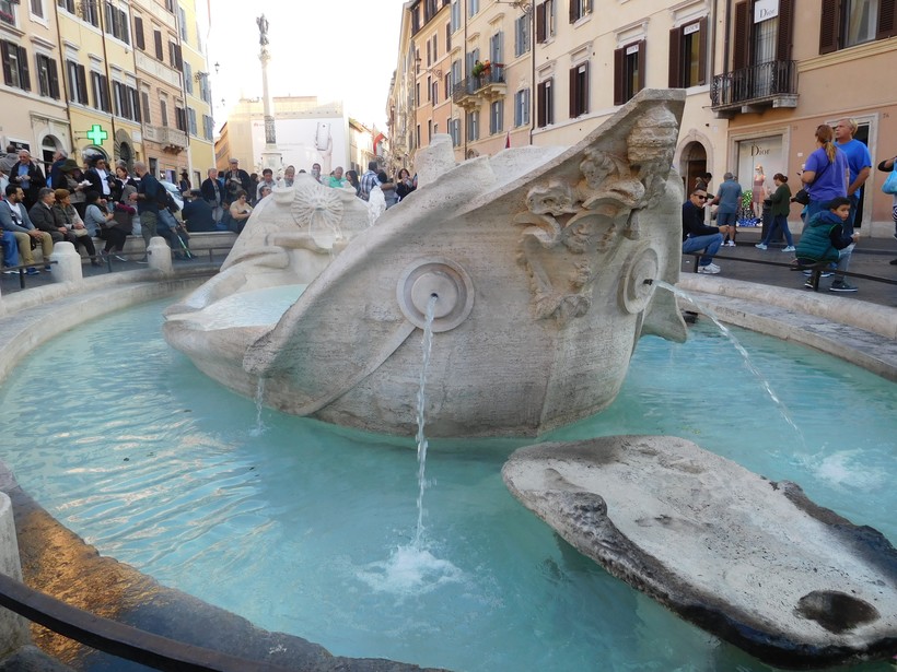 У подножия лестницы примостился прелестный фонтан Баркачча («Лодочка») 1629г авторства старшего Бернини.