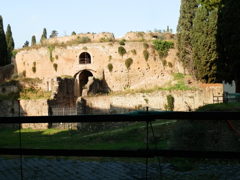 Эта обширная зелёная зона на Оппийском холме на некоторых картах обозначена, как Парк Траяна – видимо, из-за развалин одноимённых бань, которые мы и сейчас можем здесь увидеть (10). С этого места можно за 5-10 минут спуститься прямо к Колизею.