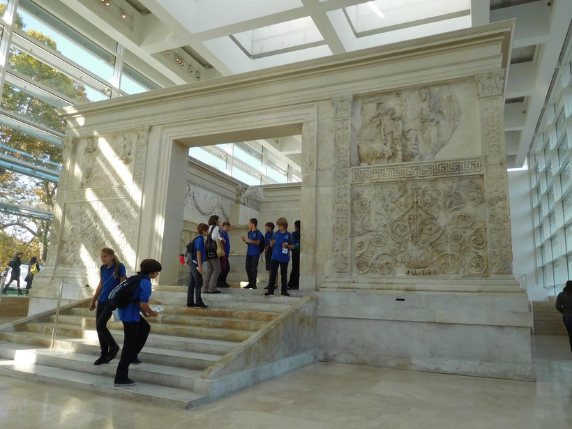 Невдалеке от Мавзолея, чуть ближе к реке находится музей, в котором выставлена ещё одна античная постройка, связанная с Августом, – Алтарь Мира (11). Его начали строить 13г до н.э. в честь мира, установившегося в Риме после победы Августа над Марком Антонием.