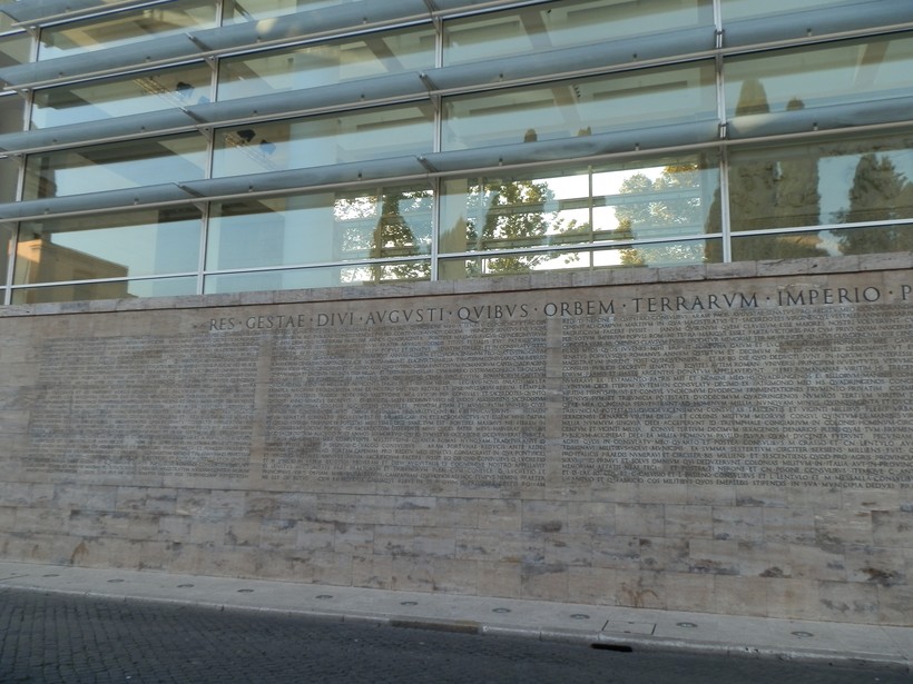Обломки Алтаря отыскали только в XIX веке под одним из римских дворцов. Долгое время исследователи не представляли, как извлечь на поверхность элементы здания, не повредив современные строения. При Муссолини, однако, были предприняты титанические усилия, чтобы Алтарь Мира был восстановлен. Здание извлекали из земли буквально по кусочкам, заливая бетоном образовавшиеся проёмы и даже морозили грунтовые воды специальным газом. В результате в 1938г, в ознаменование 2000-летнего юбилея Августа, восстановленный Алтарь Мира был открыт для посетителей (правда, не на том месте, где он стоял в античности). В принципе, отдельные его элементы можно увидеть и с улицы, не заходя в музей. Тут же плиты с полным текстом завещания Августа.