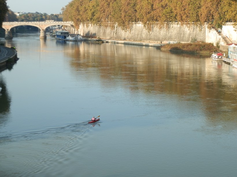А вот некая римская старушка плывёт на лодке по своим будничным делам. Честно говоря, такую картину скорее ожидаешь увидеть в Венеции, чем в Риме, но вот поди ж ты.