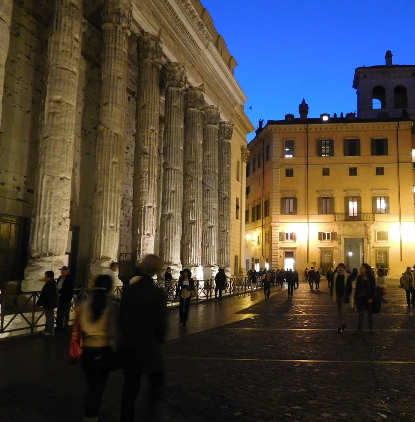 Эти колонны когда-то находились в храме Адриана, который до нас не дошёл. Наша сегодняшняя прогулка подходит к концу. Выходим на via Del Corso (24) – одну из главных улиц современного Рима – и идём вниз до площади Венеции. На таких улицах, как via Del Corso, множество магазинов, ресторанов и бутиков – уверена, вы с пользой проведёте этот вечер.