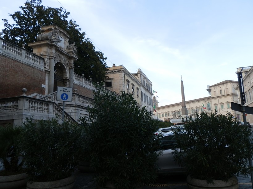 Проходим мимо массивной лестницы слева и оказываемся на площади с египетским обелиском перед Квиринальским дворцом (9).