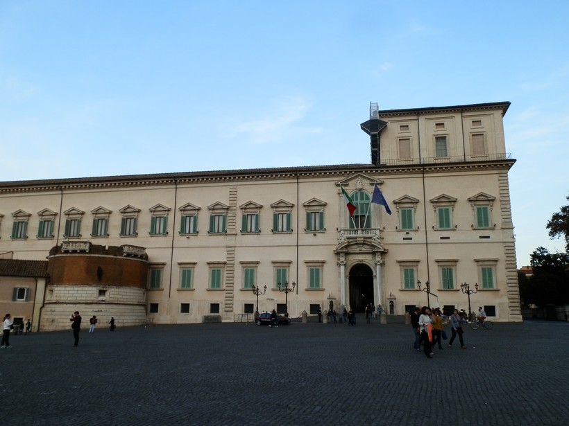Квиринал – самый высокий городской холм – уже давно является центром политической жизни Рима и всей Италии. В 1573г Папа Григорий XIII построил здесь свою летнюю резиденцию – тот самый дворец, перед которым мы сейчас стоим. После падения папства здание приглянулось итальянскому королю, который здесь и обосновался. Ну а после того, как референдум 1946г отменил монархию, как-то само собой получилось, что и президенты Италии стали жить в Квиринальском дворце.