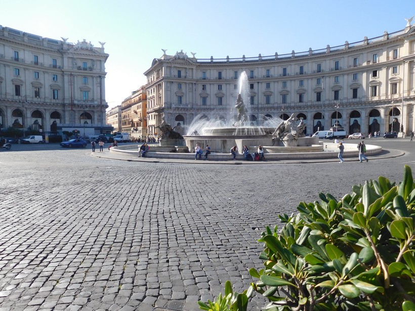 В центре неё расположен фонтан Наяд, появившийся в 1901г, а впереди вниз уходит одна из главных улиц современного Рима – via Nazionale (20) (её проложили только в конце XIX века).