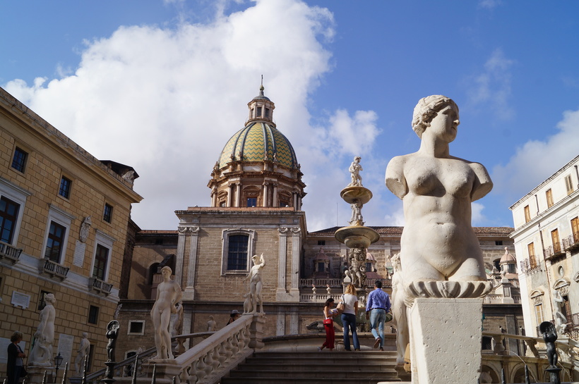 Королевский Норманнский дворец – это одна из главных достопримечательностей столицы Сицилии и всего острова. В IX веке арабы основали здесь Дворец эмиров, однако в 11 веке уже норманнский правитель организовал свою резиденцию. Бывшая арабская крепость постепенно превратилась в королевский дворец, политический и культурный центр. Не случайно личная часовня королей Палатинская капелла – это яркое воплощение арабо-норманнского стиля. Больше всего здесь меня поразил арабский резной потолок и византийские мозаики норманнов.