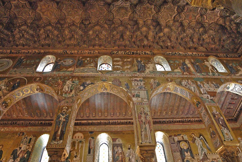 Один из самых известных соборов в Сицилии, также построенных в 12 веке норманнами, находится в Монреале (недалеко от Палермо) и считается одним из самых красивых на острове. На его мозаики ушло примерно 2.200 кг золота, согласно экспертам. Я как любительница изделий из золота не смогла удержаться и не представить, как много серег и колец можно было бы сделать!