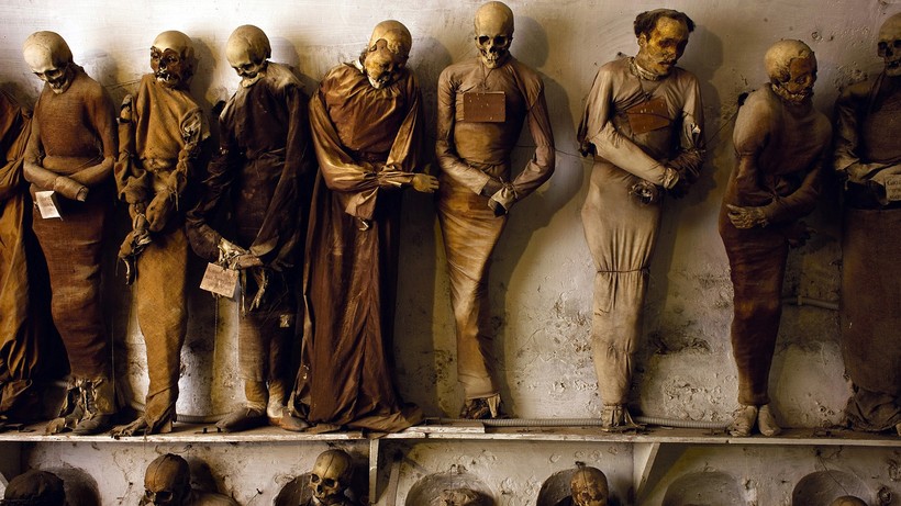 Одно из самых жутких и любопытных мест Палермо – это музей Катакомбы капуцинов (Catacombe dei Cappuccini). Он расположен на окраине столицы и является «домом» для более 800 тел мертвецов. Катакомбы начали функционировать в 1599 году, когда здесь был похоронен монах. Вскоре стало понятно, что температура и влажность внутри были идеальными для сохранности органов. Постепенно традицией стало хоронить здесь тела, особенно тех, у кого были деньги и слава. «Клиенты» сами выбирали способ бальзамирования, позу и одежду. Мумии расположены в катакомбах по залам в зависимости от пола, профессии и социального статуса.