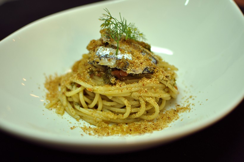 - Паста с сардинами – в качестве соуса используются типичные для сицилийского побережья сардины и укроп.