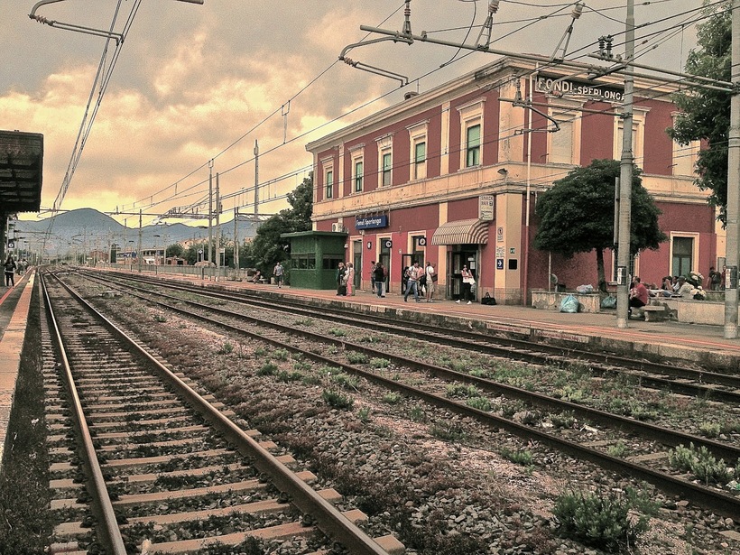 В Сперлонгу можно добраться на поезде. Одна из двух основных линий поездов между Римом и Неаполем (Рома-Наполи через Формиа) проходит через Фонди. Станция называется Фонди-Сперлонга, и местные поезда останавливаются там. При движении с севера на юг последняя станция перед Фонди называется Monte San Biagio. При переходе с юга на север последняя станция перед Фонди – Формиа. От станции Фонди такси до Сперлонги стоит около 20 €.