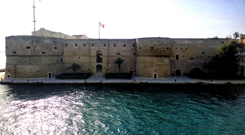 Арагонский замок. Главная тайна Таранто. Загадочная крепость, уже несколько веков хранящая секреты нескольких эпох. В разное время она была и административным центром, и фортом, и местом заключения. Заведует крепостью общество ветеранов ВМФ Таранто. Экскурсии ведутся бесплатные, правда, на итальянском языке. При входе просят заполнить анкету, в которой указывается, из какой страны вы приехали, возраст и проч., для статистики.
