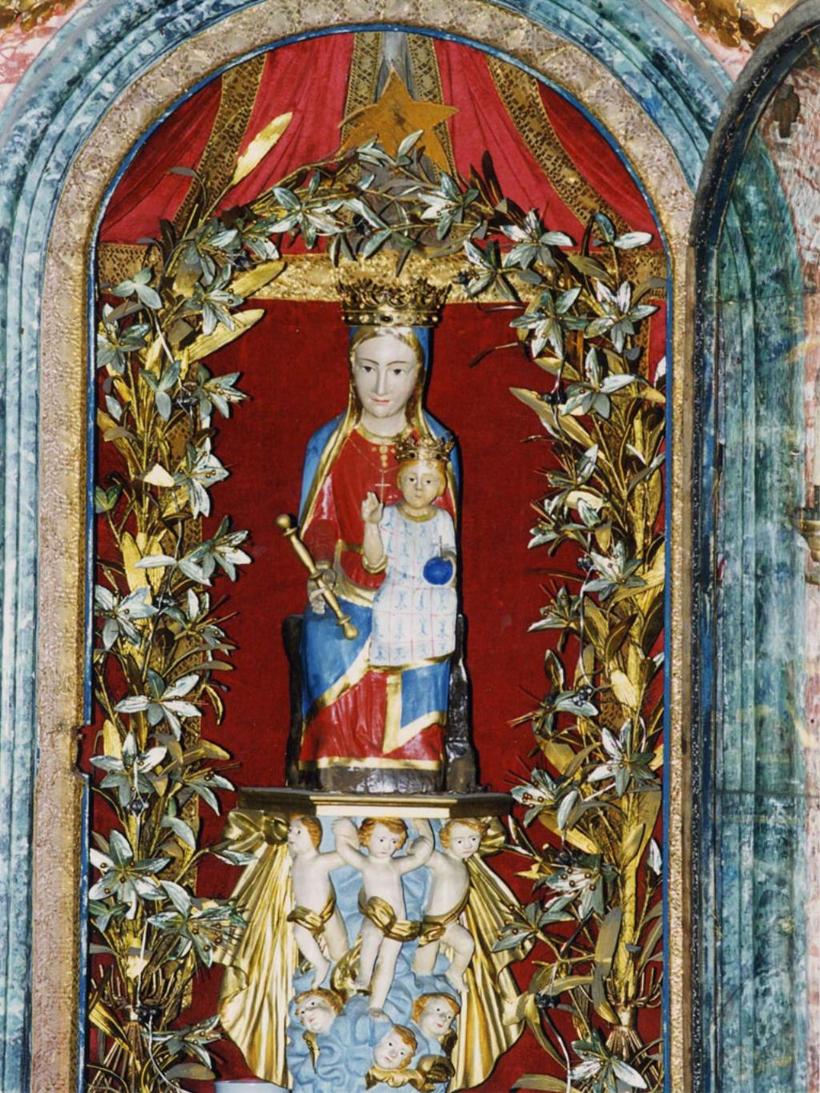 Здание выполнено в романском стиле с элементами готики, а фасад украшен красивыми фресками, изображающими эпизоды из жизни Девы Марии, и лепниной.