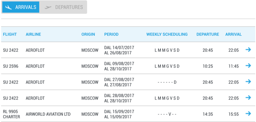 К сожалению, данное направление обслуживает только один рейс и одну авиакомпанию из Российской Федерации.