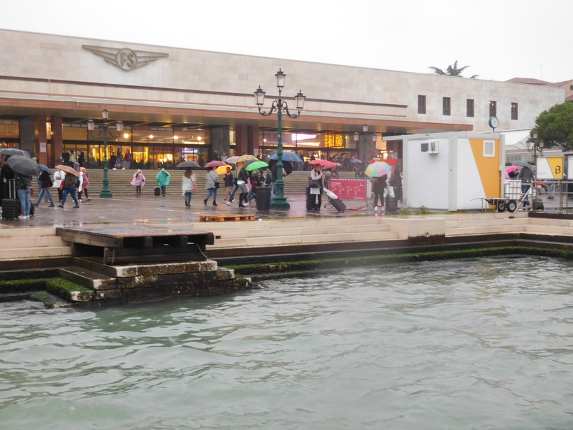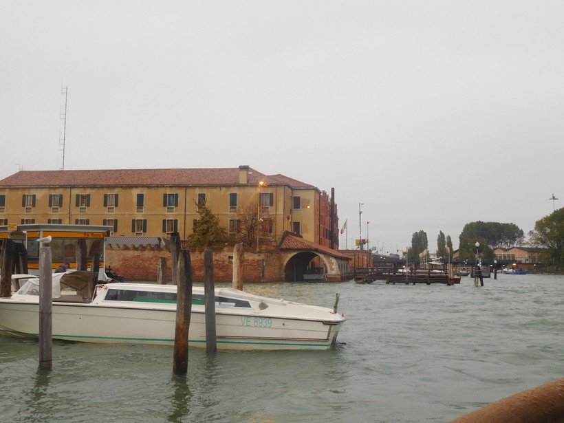 За мостом справа от нас зеленеет самый большой парк в центральной части Венеции – Сады Пападополи (3), а слева остаётся ничем не примечательное здание вокзала.