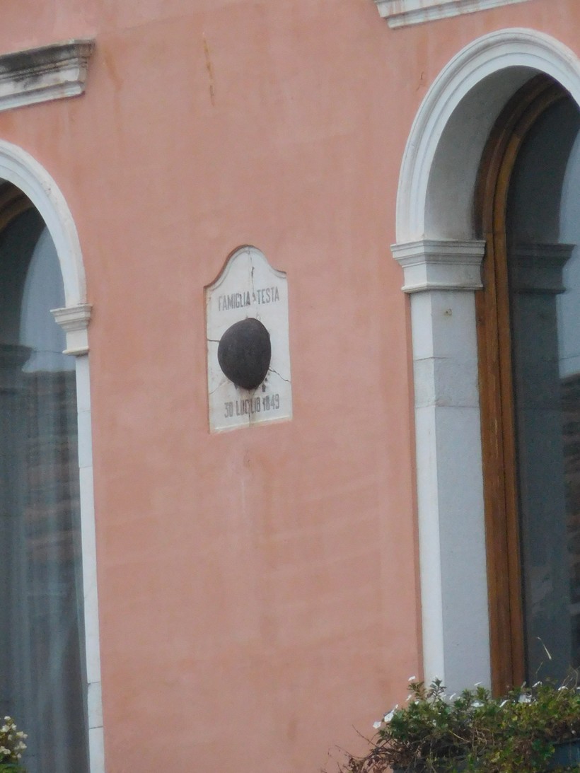 К слову, в середине XIX века венецианцы попытались восстановить свою свободу и подняли восстание против оккупантов-австрийцев. Венеция была объявлена независимой республикой и вскоре оказалась в осаде. В ходе этой осады произошло знаковое событие: в 1849 г впервые в истории состоялась воздушная бомбардировка – австрийские аэростаты сбрасывали взрывчатые снаряды на Венецию. Эффект от этой затеи был, правда, невелик. Сейчас на одном из домов Гранд-Канала можно увидеть своеобразный памятный знак о тех событиях.