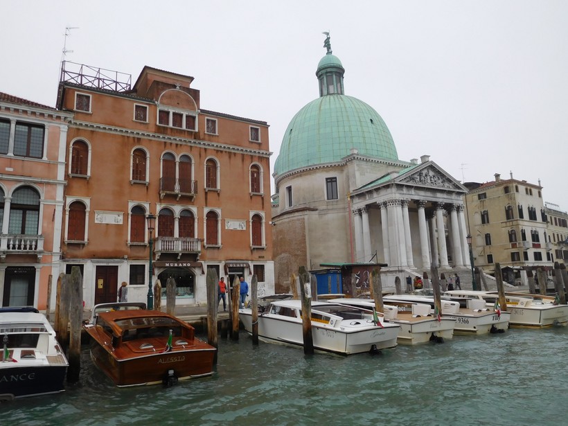 Справа, чуть не доезжая до моста, обратите внимание на ещё одну церковь – Сан-Симеоне Пикколо (6). Она и впрямь, в соответствии с названием, маленькая, зато её зелёный купол непропорционально велик.
