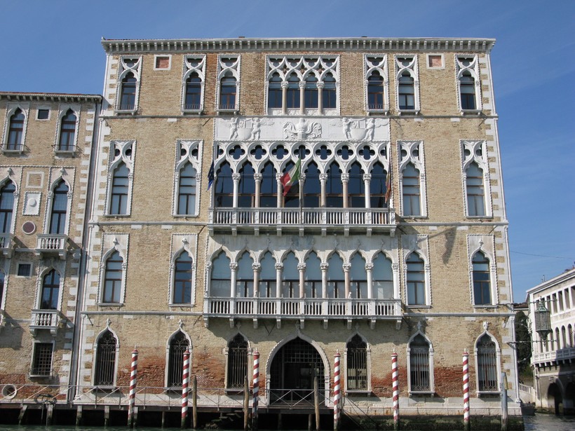 В наши дни здесь, в изгибе Канала, на период регаты также сооружают плавающую вип-ложу, на которой власти Венеции вручают призы победителям. Здесь же ещё одно известное палаццо – Ка Фоскари (26). Знаменитый исследователь Венеции, Джон Рескин, называл его «самым величественным примером венецианской готики XV века».