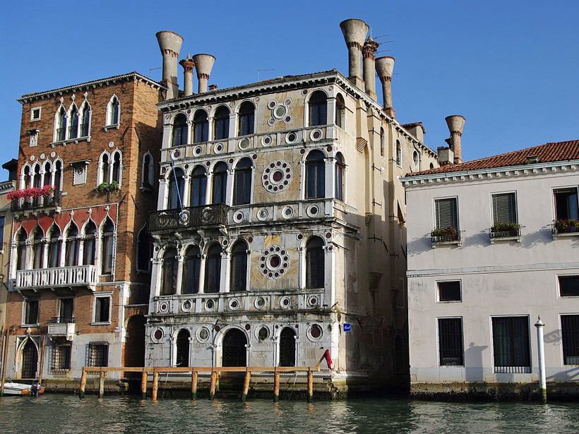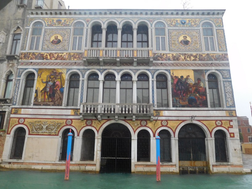 Рядом с Ка Дарио разместилось палаццо Сальвиати (35), его фасад ярко украшен муранским стеклом, но богатой истории дворец не имеет: его построили уже в XX веке.