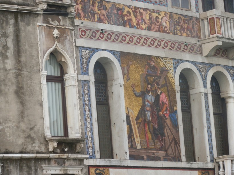 Мы выходим на финишную прямую. По правой стороне расположилось палаццо Барбариго (32) – один из самых заметных дворцов на Канале, знаменитый своими мозаиками. Мозаики появились здесь только после 1886г, когда дворец выкупила некая семья, занимающаяся производством муранского стекла.