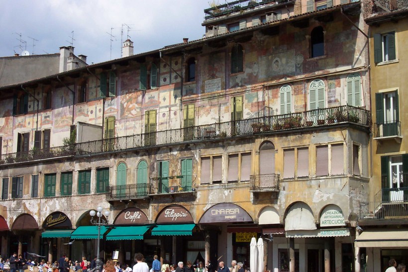 Прогулявшись по Пьяцца делле Эрбе, можно подробно изучить все самые яркие периоды архитектурной истории города: здесь и готика, и барокко, и образцы античной архитектуры. Фрески, мрамор, барельефы, скульптура, колонны – обилие декора делает каждое здание на площади по-своему нарядным и очаровательным, поэтому рекомендую вам обязательно задержаться здесь на несколько минут и полюбоваться каждым строением!