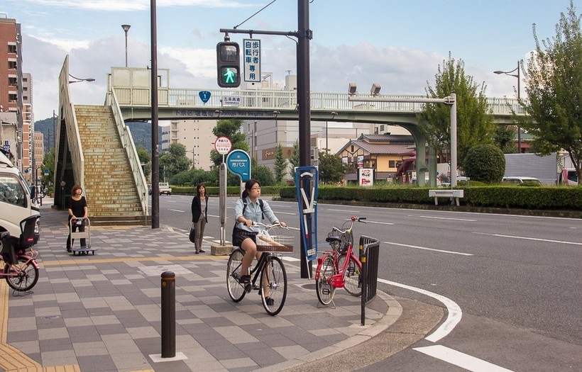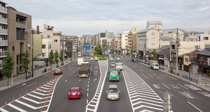Ширина Киото, прямые улицы способствуют образованию пробок во многих частях города, но всё же можно найти тихие улочки, позволяющие окунуться в осмотр достопримечательностей и культурных ценностей. По главным дорогам передвигаться тоже разрешено, если турист имеет опыт в езде по дорогам вместе с потоком машин, а не только по тротуару, а также по дорогам с левосторонним движением.