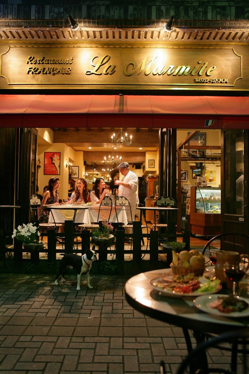 Ла Мармит (La Marmite, ラ マ ル ミ ッ ト), здание Дайкан-тё 1F, 40-18 Дайкан-тё, Хигаси-ку (метро: станция Курумамичи - линия Сакура-дори). 5 минут ходьбы к западу от выхода 1 (к Сакаэ) на северной стороне улицы Сакура Дори, + 81-52 -937-7474. Открыто во вторник - воскресенье. Обед (ланч): 11.30 - 14.00, время кафе: 15.00 - 17.00, ужин: 18.00 - 22.30. Закрыто по понедельникам. Французское бистро под управлением давнего эмигранта шеф-повара Жана-Люка Равьона (члена Кулинарной академии Франции). Предлагает домашнюю ветчину, сосиски и другие традиционные блюда французской кухни. Также доступны вина из Луары. 4 000 - 5 000 иен.