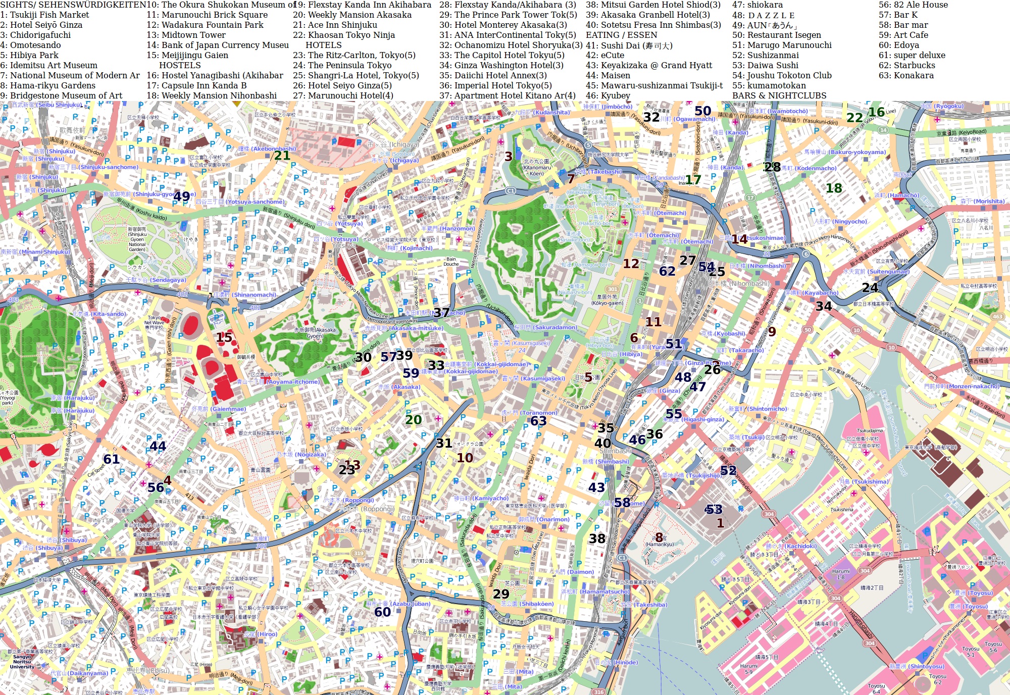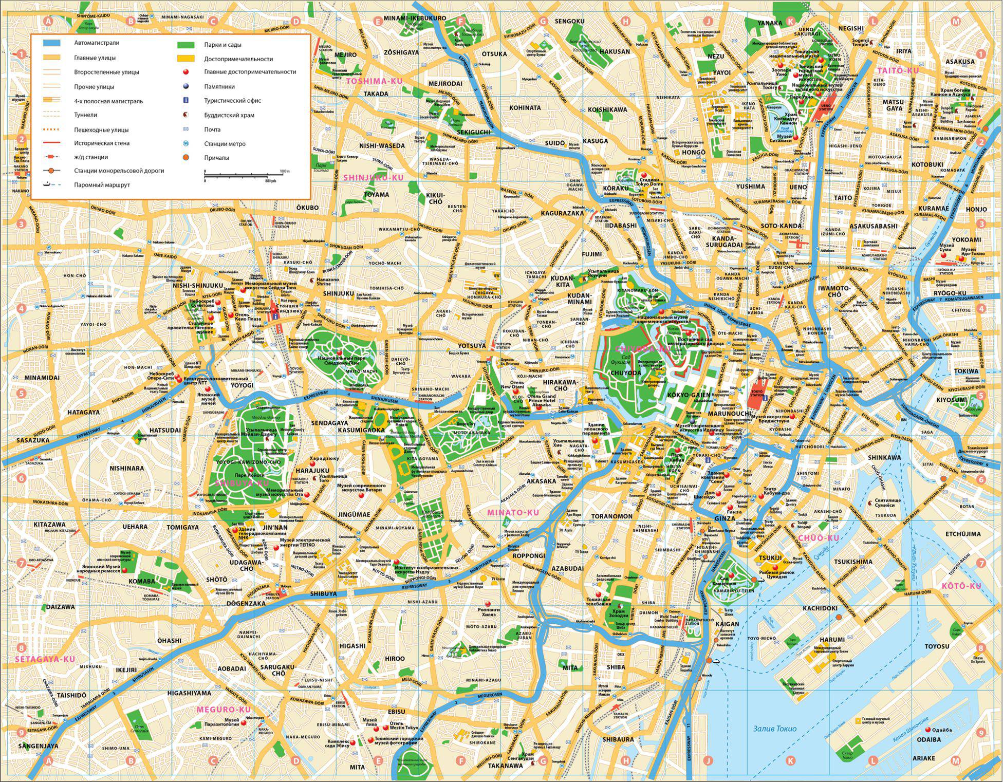 В списке популярных карт можно посмотреть карту Токио на русском с достопримечательностями. Для скачивания карт достаточно щелкнуть мышкой по изображению.