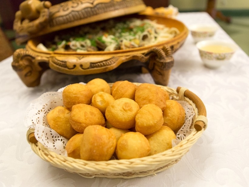 - Баурсаки! Готовятся из того же теста, которое используют для лепешек, отличие только в шарообразной форме. Мука, яйца, маргарин, немного молока – все это замешивается, раскатывается жгутом, разрезается. Тесту придается форма шарика и оно отправляется жариться в раскаленном масле на сковороде в течение нескольких минут. Must try!