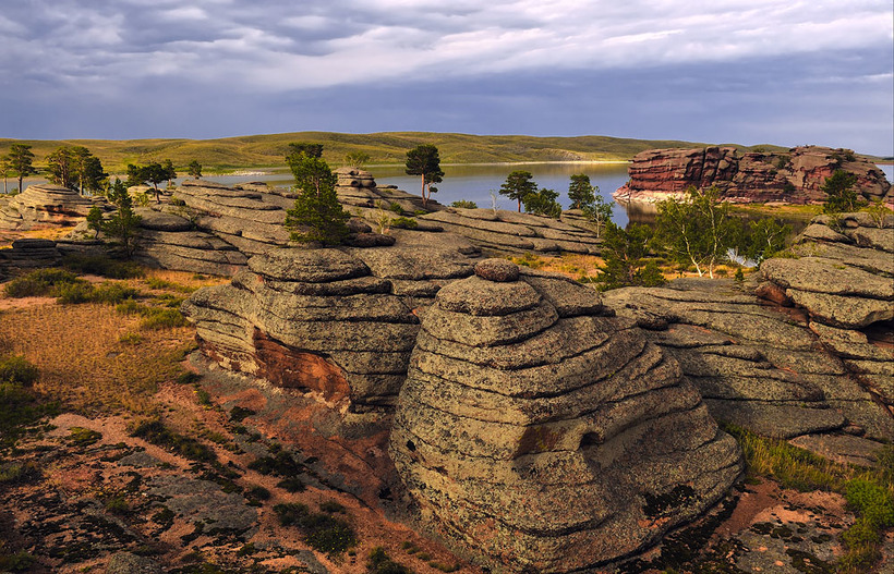 Курорт Боровое что в Кокчетауской области. Одно из самых популярных мест для летнего отдыха казахстанцев. С мая по сентябрь здесь одно удовольствие плавать в чистых озерах, бродить по горам и лесам. Сюда только и стоит ехать за сказками и легендами, которые так и струятся между загадочных глыб камней и слышатся в журчании воды.