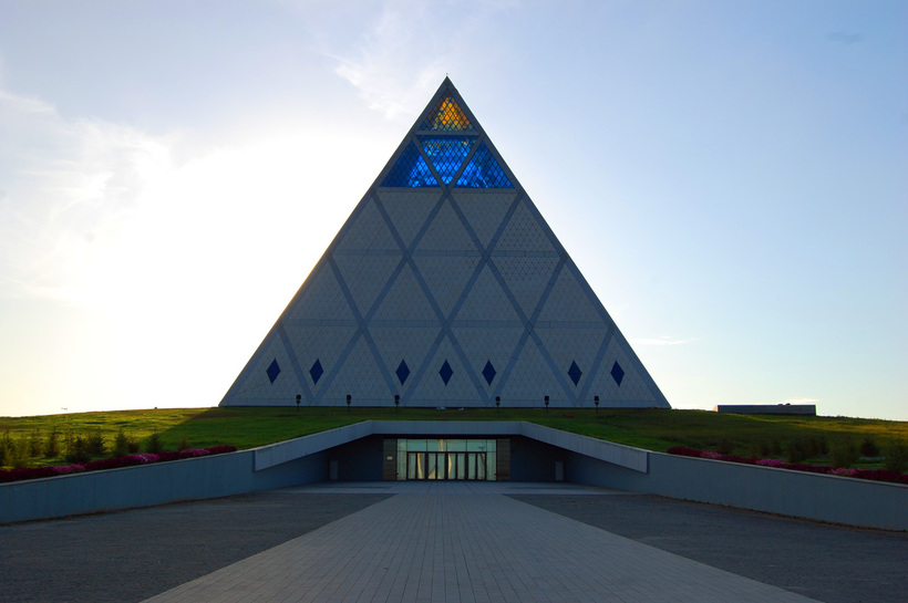 Дворец мира и согласия в Астане. Еще одна необычная постройка в столице – правильная 60 метровая пирамида. Здесь проводятся различные собрания по вопросам культуры, открыт университет цивилизаций и постоянно проходит множество выставок, связанных с религиями мира. Стоимость экскурсии равнаприблизительно 2 долларам (600 казахских тенге).