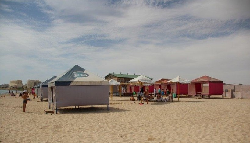 Существует в Актау так называемый «Солдатский песчаный пляж» — это пространство вдоль побережья на выезде из города. Пляж не обустроен, не имеет медпункта и спасательных вышек.