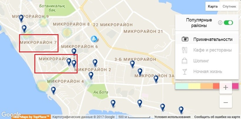 Актау достаточно «компактный» город, всё необходимое находится здесь в пешей доступности. Во время моей первой поездки меня поразило, что улиц здесь не существует, есть лишь номера микрорайонов и домов. Через несколько дней приходит понимание, что так ориентироваться в городе гораздо легче. Вызывая такси, вы говорите просто цифры: номер микрорайона – дом – квартиру, например, 5-10-23. Несмотря на то, что море будет в шаговой доступности почти в любой точке Актау, самые лучшие микрорайоны для туристов 5 и 7, так как именно там сосредоточены основные достопримечательности города.