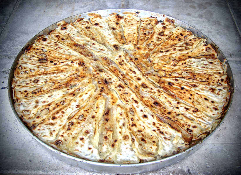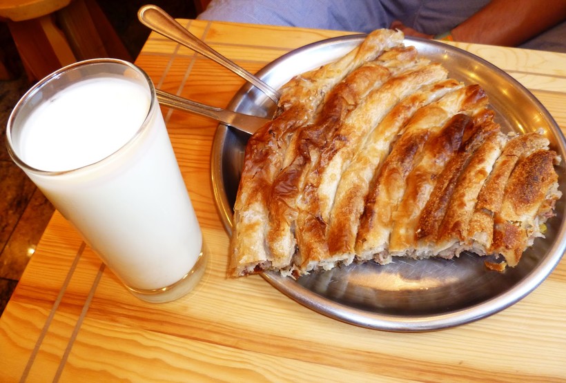 -  Флия, бурек, пита... в общем пирог из слоеного теста. Бывает с мясом, каймаком (творожным сыром), яблоком, вишней. Одна из самых вкусных вещей на свете. Не пожалеете!